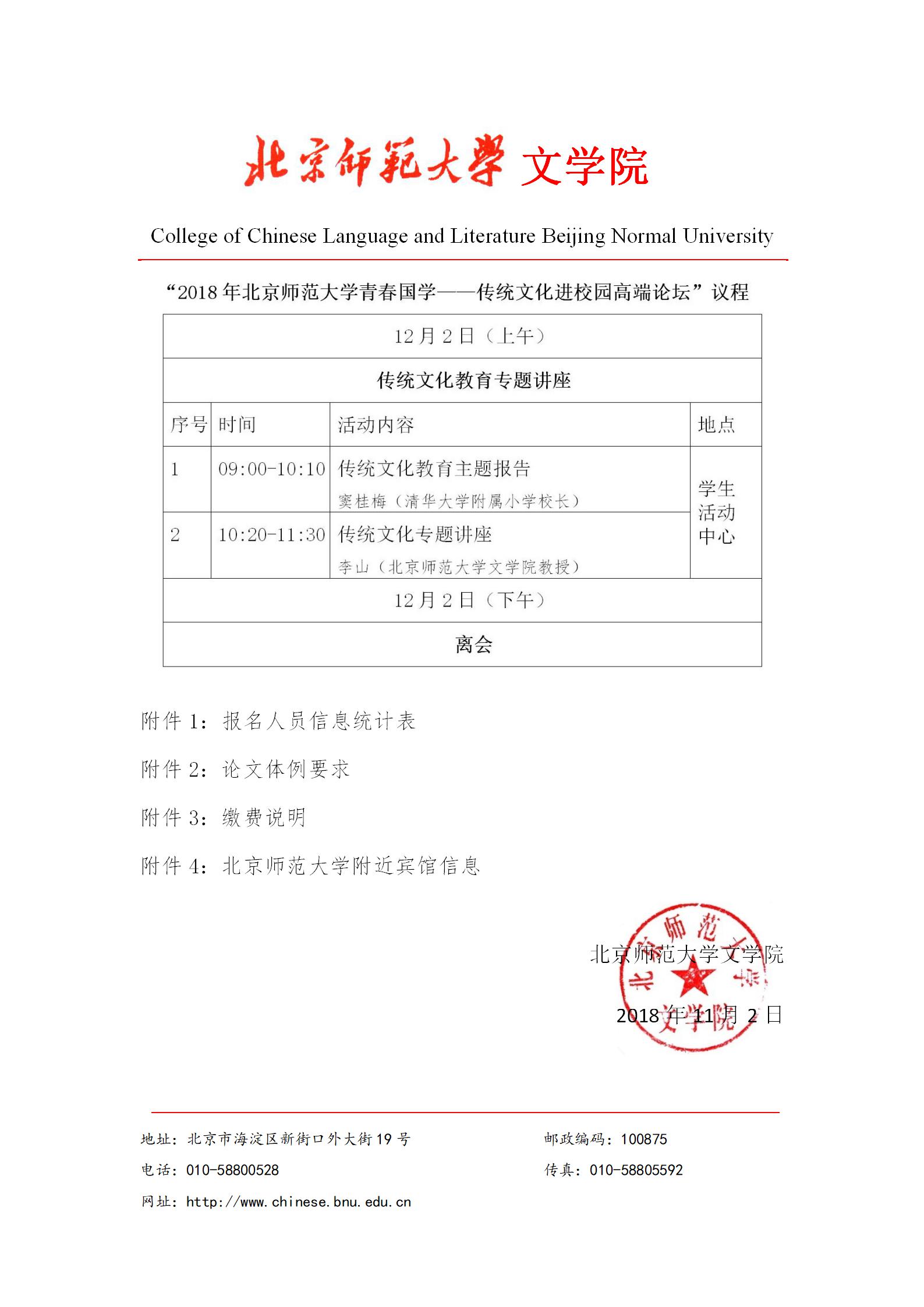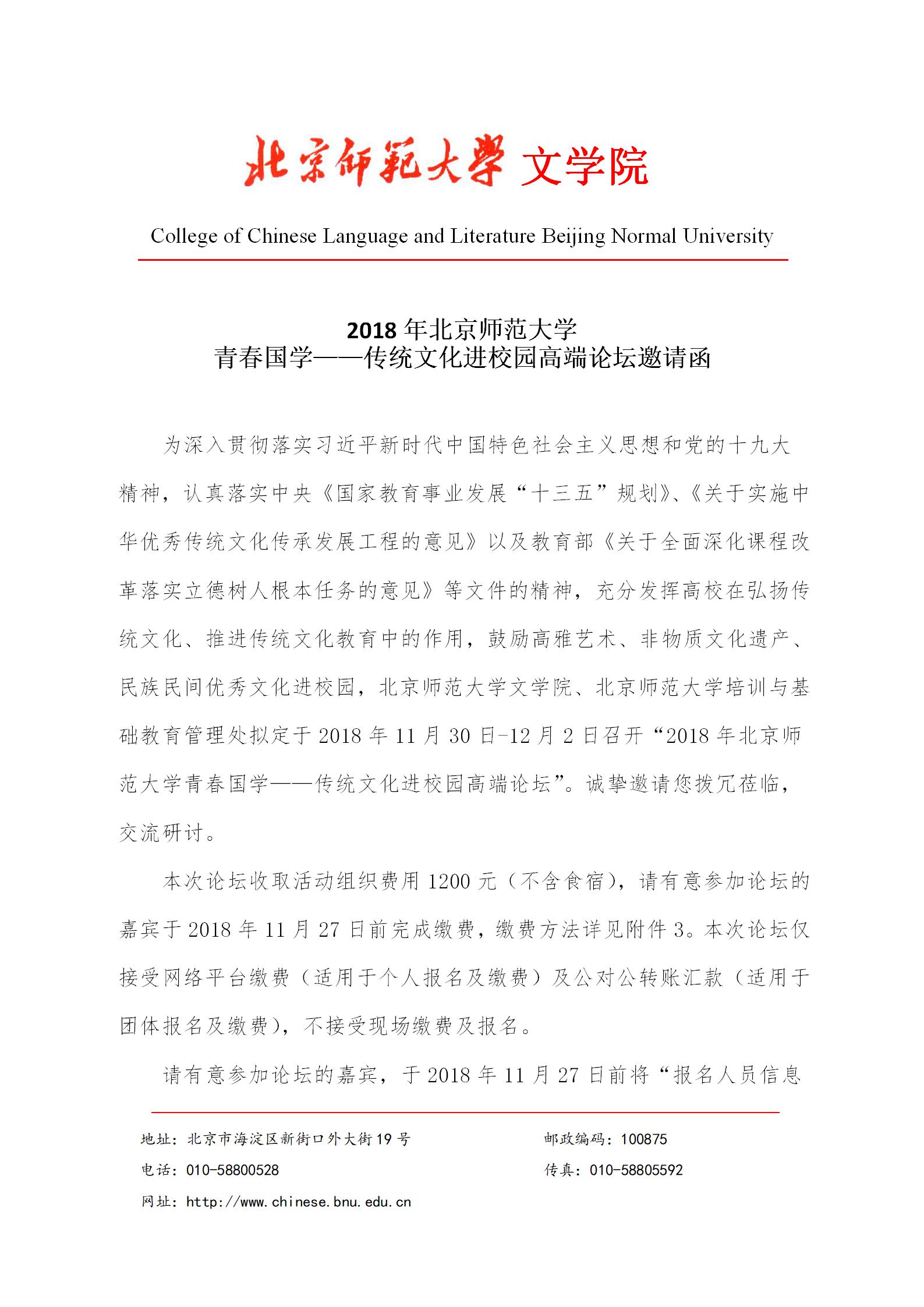 2018年北京师范大学青春国学——传统文化进校园高端论坛