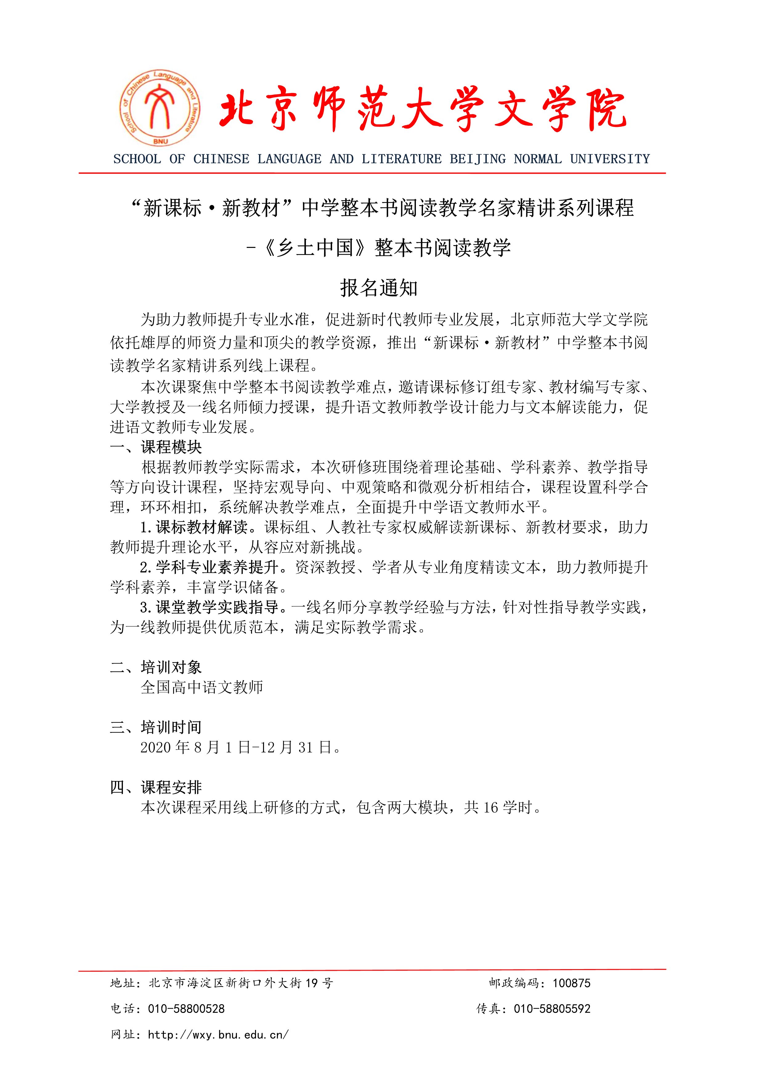 “新课标•新教材”中学整本书阅读教学名家精讲系列课程之《乡土中国》整本书阅读教学专题报名通知.pdf