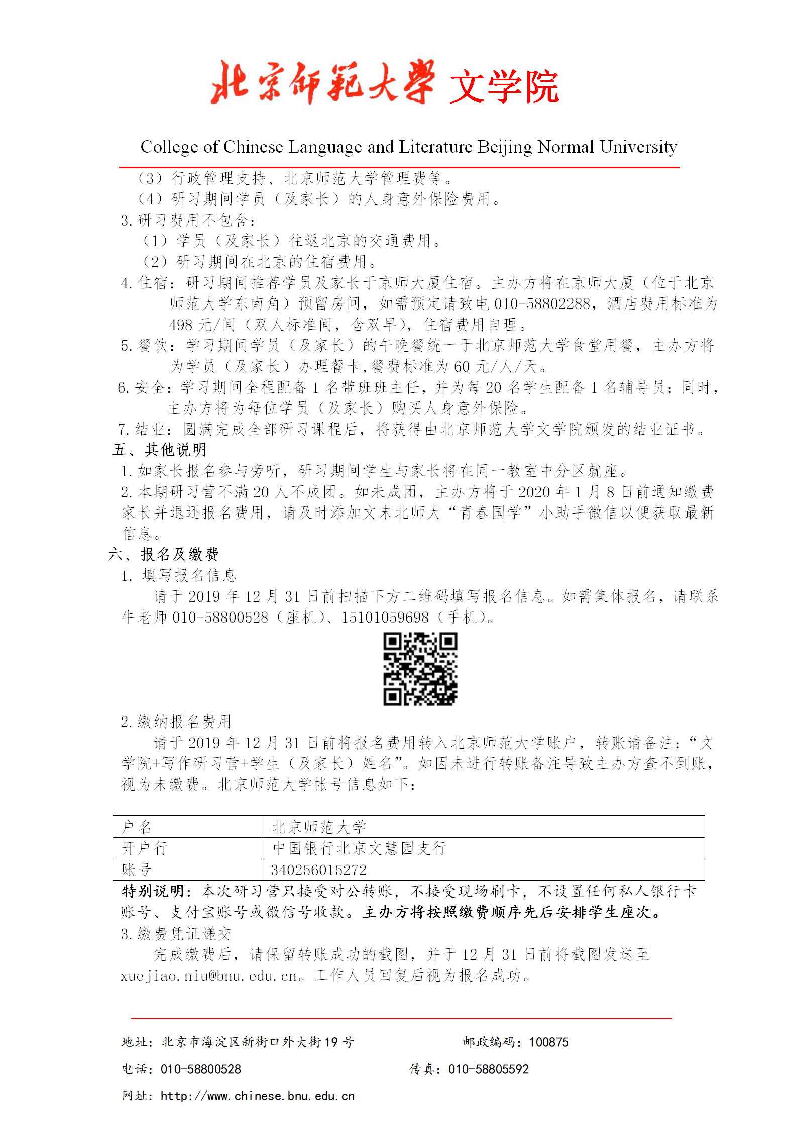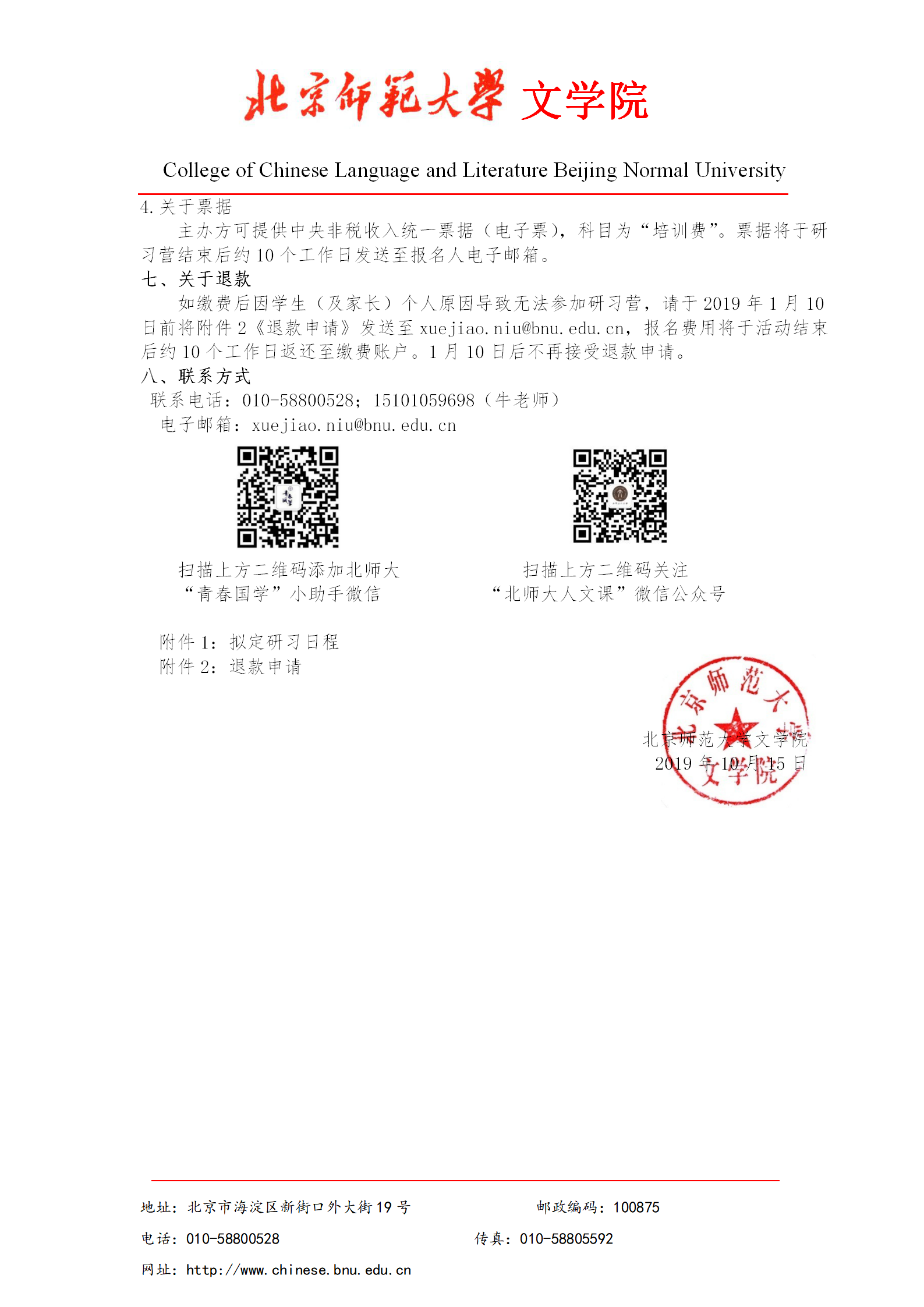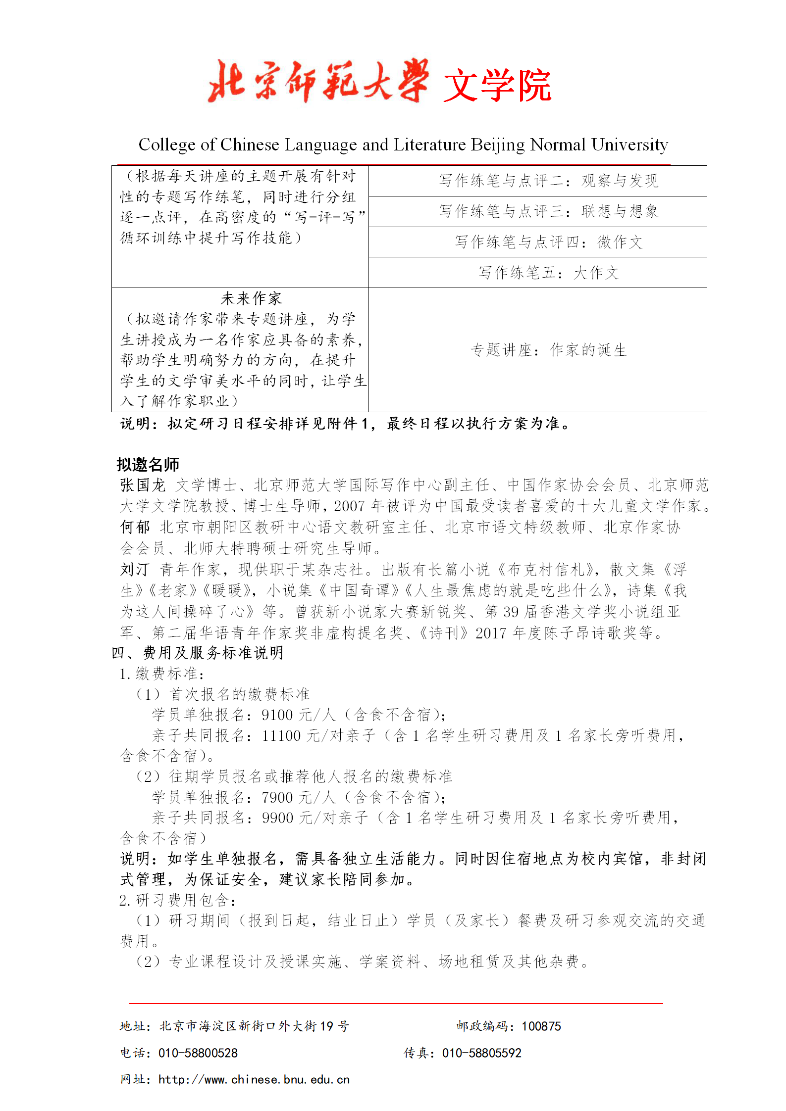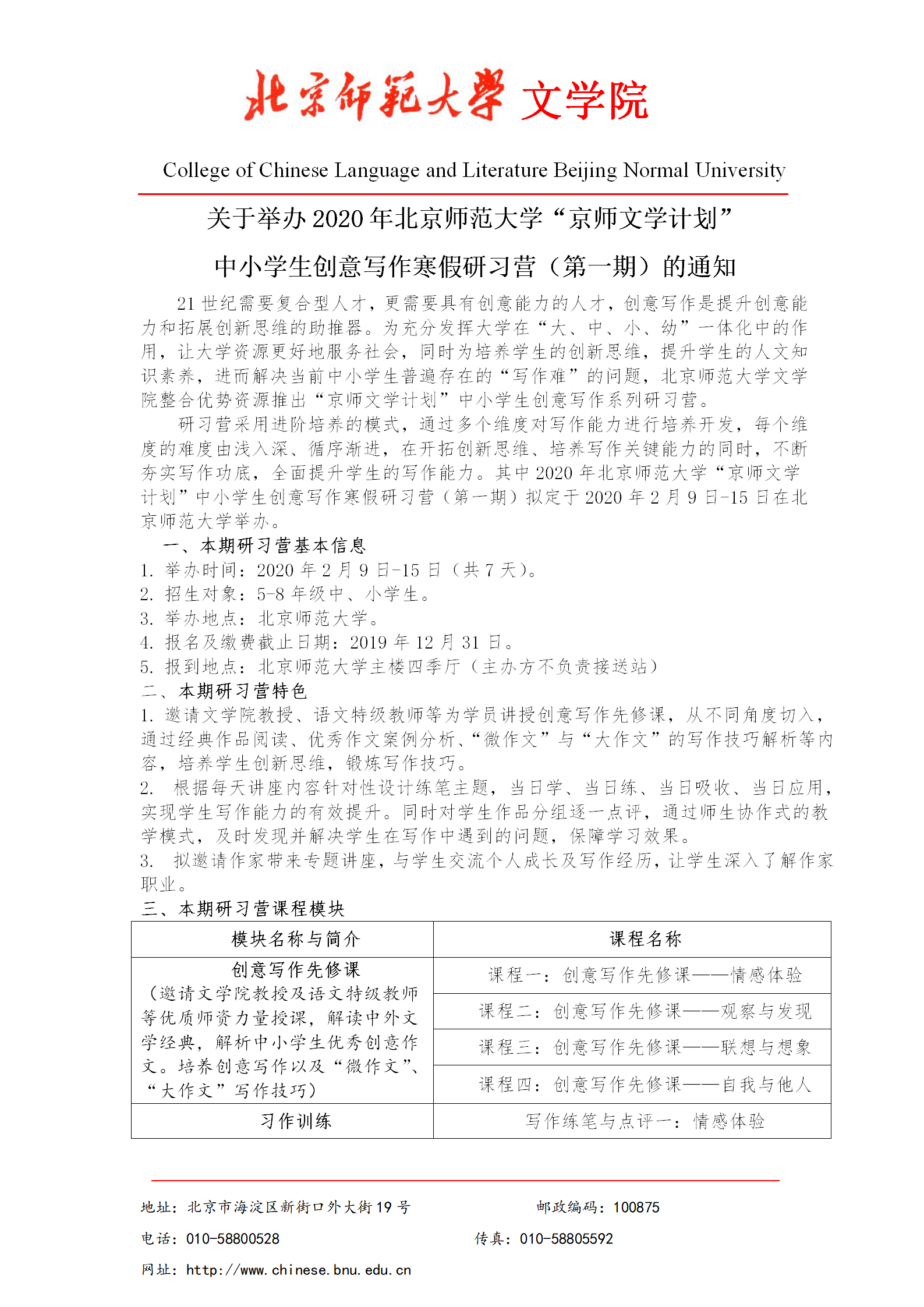 关于举办2020年北京师范大学“京师文学计划”中小学生创意写作寒假研习营(第一期)的通知