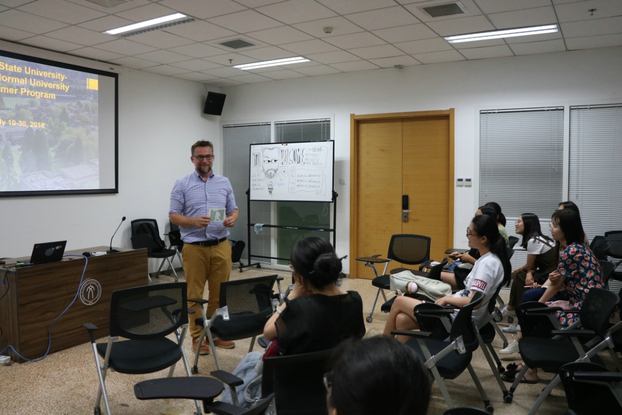 2018年6月18日至28日,美国俄勒冈州立大学写作、文学及电影学院的雷蒙德·玛维兹副教授应邀到云顶集团welcome官网,做了题为《美国现代与当代文学》的系列学术讲座。 本次系列讲座共分六讲,主题包括“后人文主义简介”、“当代美国文学中对崎岖消费主义的再利用”、“文学动物有可能动性吗?”、“关于兽欲的语言和文学”以及“当代美国文学中的当代气候”等。 在“崎岖消费主义”主题中,玛维兹副教授借用电影《老无所依》中的片段生动地阐释了他的观点,他说:“崎岖消费主义为满足消费者的观影欲望,塑造粗犷地人物形象和夸张地故事情节,这些荧幕后的现象也正影响着美国当时的经济和政治。”这种课题案例与现实生活结合的演讲方式受到了同学们的一致好评。 在每次讲座中,玛维兹副教授与现场同学们都进行了讨论和互动。 本次系列讲座结束后,玛维兹副教授还向即将赴俄勒冈州立大学参加暑期项目的同学进行了宣讲,宣讲内容包括俄勒冈州立大学简介、课程及活动安排、需要携带的物品等,并对同学们提出的问题进行了解答。 (文/李斌,中华文化研究与传播学科交叉平台供稿)