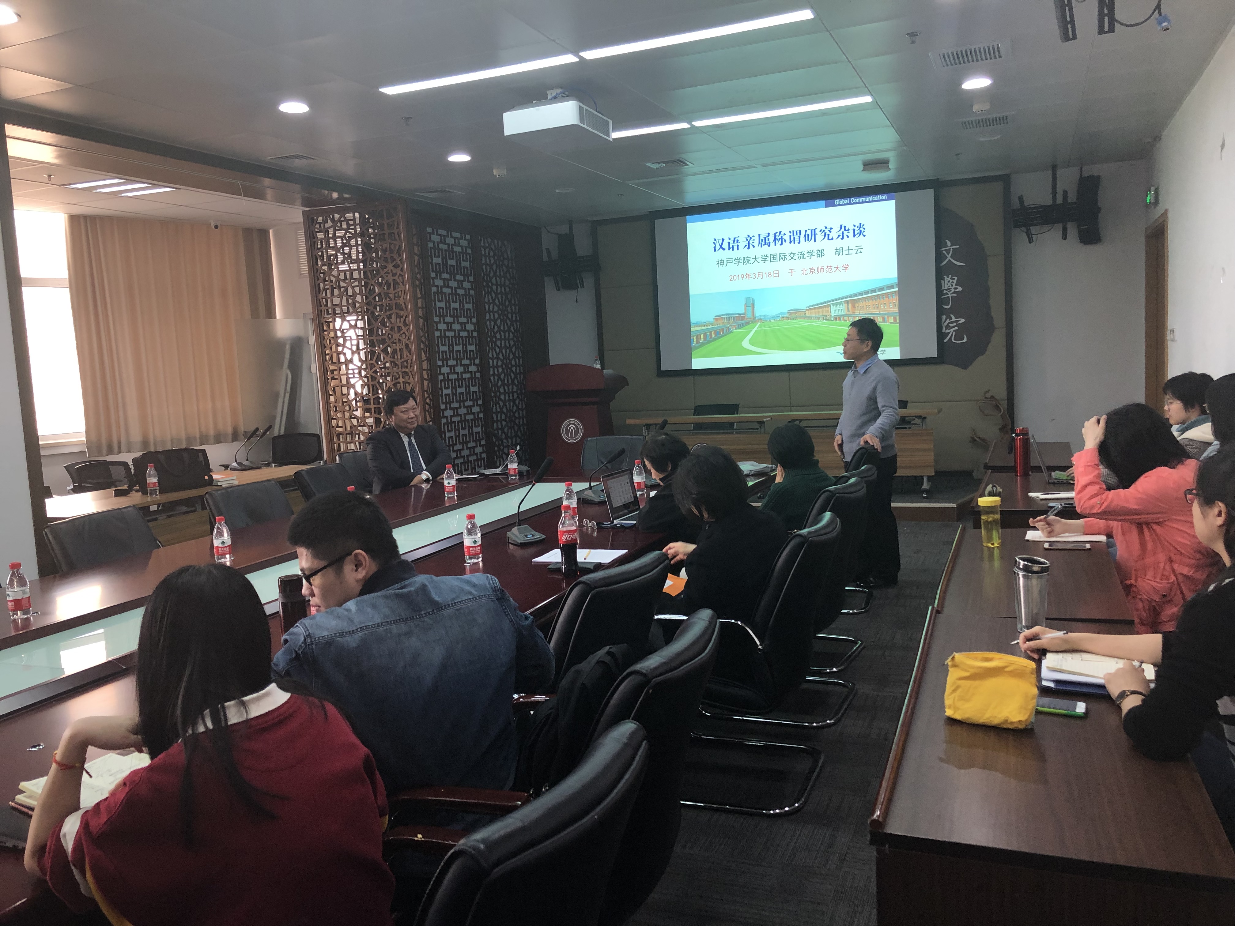 2019年3月18日,日本神户学院大学国际交流学部胡士云教授应云顶集团welcome官网语言学与应用语言学研究所的邀请,在文学院C5049学术报告厅作了题为“汉语亲属称谓语研究杂谈”的讲座。讲座由张维佳教授主持,来自北京师范大学、首都师范大学、中国农业大学和中央民族大学等高校的学者及博、硕研究生聆听了讲座,与会交流。 胡士云教授通过引入影视作品和戏曲中有趣的亲属称谓语,介绍了自己在汉语亲属成为研究领域的基本思路:分别从宏观和微观角度入手讨论。在宏观上,从系统的、词汇学的、社会文化的角度去探询其究竟,梳理自古及今的亲属称谓演变脉络,并且从语言比较、语言接触的角度进行汉语和中国国内其他民族语言及外语进行对比研究。同时胡教授举了“爷、爹”,“伯、叔”,“公”,“舅、姑”,“夫人”等大量语言实例进行分析解释其词义演变路径。并结合在对外汉语教学中的汉语亲属称谓教学经验,对不同语言系统亲属称谓的对翻差异中,研究其文化差异造成的语义指向范畴。在微观上,胡教授从《“爸爸”疏证》一文引入,介绍了“爸爸”这一亲属称谓自上古至今的字形、字音、指称等方面的演变发展脉络。 胡教授演讲结束后,师生踊跃提问,现场气氛非常活跃。围绕亲属称谓问题,主要从跨语言比较、儿童习得语音、方言系统的地理接触、发音生理、社会文化的约束性和语言演变的普适性等角度,展开了热烈讨论。胡士云教授一一作答。胡教授渊博的理论知识和深入浅出的讲授,让在座师生深受启发。 (刘梦喆撰稿)