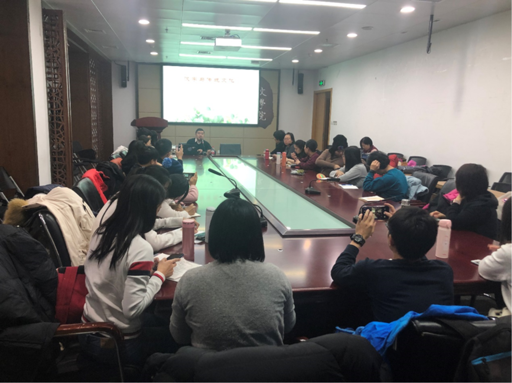 2019年12月5日,根据教育部港澳台事务办公室及北师大国际交流合作处的安排,澳门化地玛圣母女子学校副校长及随行教师一行来访我院,我院副院长齐元涛教授应邀为其做了关于汉字与传统文化的讲座。 齐元涛教授深入浅出地展示了汉字中所体现的“尚右”“婚娶”“中和”等丰富有趣的文化信息,让来宾领略了汉字作为文化化石的魅力,并就大家关心的繁简字问题进行了深入的交流。 澳门化地玛圣母女子学校是一所天主教私立学校,此次北师大之行是其在北京交流访问行程中的一站。 最后, 澳门化地玛圣母女子学校代表向我院赠送礼品并合照。 (文学院外事办公室供稿)