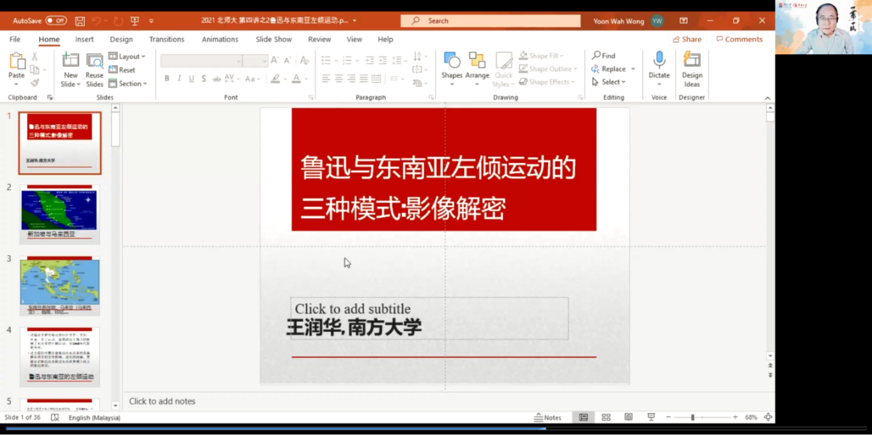 2021年11月16日至12月2日,由云顶集团welcome官网主办的“中华文化在南洋”系列讲座于线上成功举办。新加坡南方大学学院中文系资深讲座教授王润华应北师大文学院沈庆利教授之邀担任主讲人,从多个侧面讲述了中国文化传统在东南亚地区的发展演进过程。 王润华教授在线上 “中华文化在南洋”系列讲座共分为六讲,时间跨度为三个星期。王润华教授的精彩讲座吸引了一大批海内外的学者和学子,听众除了北师大师生之外,还有来自北京大学、清华大学、人民大学、复旦大学、台湾清华大学、新加坡国立大学、马来西亚拉曼大学等国内外三十多所高校的学者和学生,线上师生累计近五百人。王润华教授开阔的学术视野、丰富多样的研究方法与内容,获得了海内外观众的一致称赞。 海内外学子线上提问 11月16晚,王润华教授以“郑和登陆马六甲以后:中华文化与西方、东南亚本土文化的交汇、创新、蜕变”为主题,展开了第一场讲座。王教授指出郑和七下西洋是一场和平与文化之旅,将中国文化传统带到了马六甲地区并产生了深远的影响。东南亚颇具特色的“峇峇文化”正是中国文化传统与马六甲本土文化传统结合的典范,体现了华人文化在异国创新发展的新模式。 王老师讲解郑和下西洋对马六甲地区的影响 第二场讲座于11月18日举办,主题为“移民、华侨、华裔、东南亚华人与文化”。王润华教授从“文化中国”概念出发,强调了“华人”的文化意义。他指出,世界各地的华人移民结合不同的在地文化、历史经验推动了中华文化在海外的多样性发展。以东南亚为例,新马地区华人创造出了海南鸡饭、捞鱼生等融合多元文化特色的菜肴,可以直观地反映中华文化在海外的在地化发展和创新。 于11月23日举办的第三场讲座聚焦文学领域,主题为“东南亚华文文学的多元叙述系统”。王教授将中国对东南亚的想象与书写追溯到明代郑和船队的“西洋”叙述,将《西洋藩国志》《星槎胜览》等典籍作为中国诠释东南亚文化的“大叙述传统”的开端。他指出,当前的新马华文学史只涵盖了二十世纪初年以来的白话文学,而完整的新马华文学史应该涵盖十五世纪以来的文言与白话作品,并应该注意到历史现实的复杂性,兼及跨国籍、跨国界的作家作品现象。最后王教授提出了重构新马华文文学的多元复杂系统的倡议。 王老师讲解世界华语文学的文化认同问题 第四场、第五场讲座进入到了更具体化的作家个案。 于11月25日举办的第四场讲座以“鲁迅在东南亚”为主题。王教授指出,在东南亚殖民历史时期,“鲁迅形象”与左派反殖民的社会群众运动密切结合,成为了东南亚成为反抗殖民主义的重要的道德精神力量。结合已解密的相关历史资料,他指出,南下的大陆左派文人推动了鲁迅的左派文化战士形象在新马地区的扎根与传播,而鲁迅的作品也直接对东南亚的文化与政治产生了深远的影响。 王老师讲解鲁迅与东南亚左倾运动的关系 第五场讲座于11月30日举办,介绍了老舍的南洋书写与郁达夫在东南亚的文学与政治活动。王教授认为,中国现代文学史上最早的南洋想象是老舍的《小坡的生日》,他认为《小坡的生日》是老舍对东南亚国家多民族和谐共存的预言和寓言,并非简单的童话。此外,王教授使用后殖民理论,分析了老舍《骆驼祥子》与康拉德《黑暗的心》的结构的相似之处,展现了广阔的比较文学的视野。最后,王教授简要勾勒了郁达夫在东南亚的社会政治活动轨迹,阐述了郁达夫对抗日战争与东南亚文学发展的贡献。 王老师讲解老舍《小坡的生日》 最后一场讲座于12月2日举办,侧重于介绍与分析东南亚华人文化与文学创作的发展趋势。王润华教授指出,当前的新马华文学创作呈现出“重返热带雨林”的趋势,不少本土作家采取去东方主义的视角,力图呈现多元文化与本土声音。王教授重点介绍了马来作家鲁白野、商晚筠等对热带雨林与多元族群的书写。讲座的最后,王教授提出了从“双重传统”看“世界华文大同文学”的倡导。他指出,由于华人移民的迁移与落地生根,世界各地的华文文学以融合“中国文学传统”和“本土文学传统”两种传统的方式发展着,如今,需要从多元文学中心的观念看世界华文文学。 王老师向大家介绍东南亚的创作情况 王老师在线上答疑 “中华文化在南洋”系列讲座吸引了海内外众多师生参与,也得到了较好的响应与反馈。总的来看,王润华教授从历史到现状,详细分析了中华文化传统在东南亚地区广泛而深刻的影响以及华人文化在东南亚的创新化发展,也将理论结合具体的作家文本,较为全面清晰地勾勒了新马文学创作与研究的历史与现状。讲座期间,大量师生在线上与主讲人王润华教授进行互动交流,讲座氛围较为活跃,调动了大家对中华文化的海外发展这一话题的兴趣,也让更多学子关注到世界华语文学的创作与研究。期待云顶集团welcome官网未来推出更多精彩的学术活动。 (撰稿人:谭琳潇)