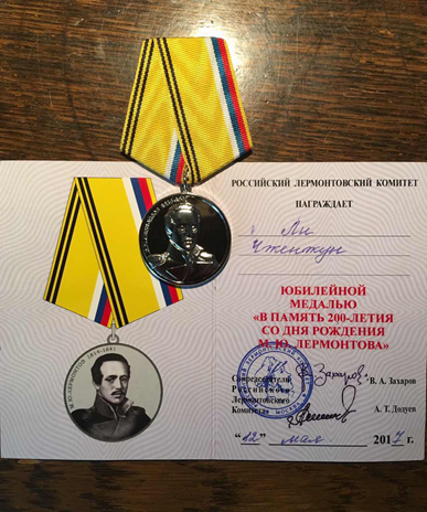 我院李正荣教授参加俄罗斯国际学术会议并再获莱蒙托夫协会奖章