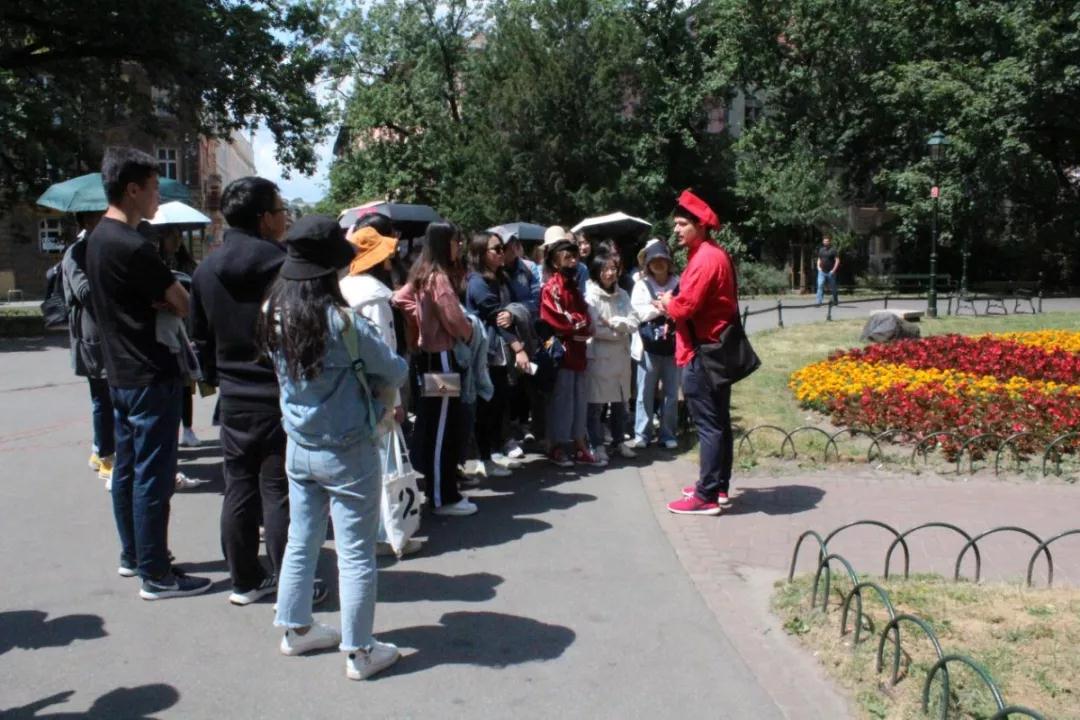 在波兰首都华沙学习了快两周之后,我们前往波兰旧都克拉科夫。 在克拉科夫,幽默风趣的啤酒先生(Mr Beer)带我们先后参观了雅盖隆大学、中央广场、圣母圣殿钟塔、维瓦尔教堂、奥斯维辛集中营等地。 ① 克拉科夫 克拉科夫,英文名Krakow,波兰旧都,也是维瓦斯族人的故乡。曾两度受奥地利统治,1918年随波兰独立而回归波兰。与华沙相比,二战中受到的摧毁更小。现为波兰第二大城市,是波兰重要的水陆交通枢纽,工业中心;有博物馆、维瓦尔宫、城堡、教堂等名胜古迹,尤以奥斯维辛而为人熟知。 ② 雅盖隆大学 ③ 老城中心广场集市 走过雅盖隆大学,就来到中央广场。广场上,鸽群飞舞,教堂林立,这里汇聚了克拉科夫老城众多地标性建筑,如圣母圣殿、市政厅、密兹凯维奇巨型雕像。据介绍:这里曾是克拉科夫的市中心,商人们在这里建立了工艺品交易厅。现在,广场成为著名的旅游景点,我们看到,广场上举着各国国旗的游客熙熙攘攘,人流量明显高于华沙。环广场绕行的马车,增添了中世纪的氛围。广场中的大厅一层是纪念品商品店,二层是国家博物馆画廊,收藏着18至19世纪画家的作品。 ④ 圣母圣殿 圣母圣殿是一座砖砌的哥特式教堂,第一次看到它时,Mr Beer向我们说起了关于它的“两兄弟”的传说,引起了我们的强烈好奇,不过最终确定:它们建于不同时期,由于外观不对称而又紧密相连而被人们赋予了美好传说。走到它的背面,刚好钟楼顶部响起号角声,我们停下和周围人一起朝顶楼挥手示意。老师介绍道:每隔一小时,从钟楼顶部会响起号声,曲调在中途中断,纪念13世纪著名号手,它在蒙古人袭击城市时发出警报而被弓箭射中喉咙。 ⑤ 维瓦尔城堡 沿街而行,我们看到了大大小小无数教堂,每至一处,幽默风趣的Mr Beer先生就会停下给我们做简单的介绍。爬至山顶,就到了维瓦尔城堡。一路上,我们看到许多砖砌的古老城墙,据说是为抵御外族入侵而建。看到护城河的时候,老师和我们说起“龙”的传说,相传也是克拉科夫这座城的来历。而维瓦尔城堡,则是波兰最古老的宫殿,从10世纪起就作为许多国王的宅邸,许多国王的加冕仪式就在这里完成。同学们笑谈:从气魄宏伟又雕饰精美的建筑上,不难想象当时王公贵族们的奢侈生活呀! ⑥ 奥斯维辛集中营 去波兰,去克拉科夫,怎能不去奥斯维辛呢?克拉科夫的最后一站,我们选择去奥斯维辛集中营。不知是心理作用,还是因为淅淅沥沥的小雨天气,一路上感觉越是接近奥斯维辛,就越能嗅到死亡的气息。集中营中大片草地和零星野花,有同学猜测,这里只能长草。跟随着Mr Beer的步伐,我们走进了一幢幢具有浓烈霉味的“房子”里:被称作医院的地方,其实是密密匝匝的圆形坑;所谓的厨房,只有一个已经坍塌了的灶台;所谓的居所,是紧密排列着的三层床,据说每张床要塞进5-10个成年人。以及,在二战即将胜利时被炸毁的毒气室遗迹。于是,大家的思绪便被中学时代那篇《奥斯维辛没有什么新闻》的新闻报道牵引:“今天,在奥斯维辛,并没有可供报导的新闻。”没错,这里没有什么新闻。 课程学习 回到华沙,我们继续之前的专题学习,主要包括音乐、绘画、波兰女性三方面。 ① 音乐 音乐主要是讲座“A Subjective Guide to the History of Polish Popular Music”、“Polish Songs:Top10 of All Time”及“Polish Classical Music”三场讲座中涉及。老师们给大家播放了不同时期和不同类型的曲目,Agnieszka Wronowska老师还弹起吉他,教我们唱起波兰传统儿歌。在歌声中,仿佛我们都回到童年,甚至有同学把它和中文版的《两只老虎》串唱。 ② 绘画 倒数第二天,Katarzyna Kolak-Danyi老师带来了“The Most Famous Pieces of Polish Art”的讲座,为我们介绍了梳理了近代波兰绘画的不同派别及派别特征,以及不同时期的著名画作及画家。最后,同学们通过小组合作的方式,找到了手中作品的对应名称及作家。 ③ 波兰女性 围绕波兰女性的话题是在讲座“Polish Women in the History and Culture of Poland”中。在这场讲座中,老师主要介绍了波兰古代、近代的著名女性,及当代活跃于体育、影视、文学的代表人物。并且,老师的这次讲座不仅有PPT展示,还带来了相关书籍让大家轮流翻阅,尽管语言不通,但翻到装帧精美的波兰语书籍时,还是比较激动哒。 经过近三周的课程学习和文化体验后,十个小组的同学经抽签选择了不同的主题进行成果汇报。同学们所选择的展示内容丰富多彩,或横向比较,如第六组的“Top10 Elements of Polish Pop-Culture: Chinese Perspective”,第八组的“Poland and Its Culture in the Eyes of Chinese People”;或纵向延伸,其他组的“Influence of WW2 on Poland”、“Polish Artists and Writers”……,从文化、政治、经济、饮食、生活方式、音乐、文学等方面,将这20天中所学所感呈现在汇报中。 经过紧锣密鼓的准备后,我们最终在华沙大学历史学院Sala kolumnowa礼堂内进行了汇报展示。据Piotr Kajak老师所说,迄今为止,这座礼堂,他一共只进来了六次。听罢,我们对这座充满古典气息的建筑更加肃然起敬,也更加郑重严肃地对待这次展示。 大家的展示得到了老师们的高度肯定,对每一小组的展示,Piotr Kajak老师都给予了相应的点评,并为每一位组员赠送了带有波兰特色的礼物。最后,在华沙大学图书馆前,Pitor Kajak老师为同学们一一颁发了结业证书,并寄语同学们努力学习,不忘华沙。 最后,我们回到Jeff’s吃了此行的最