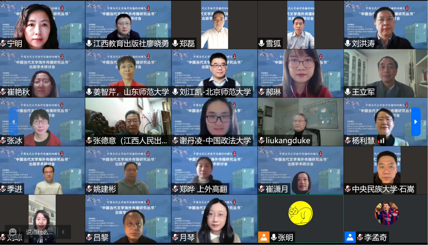 2021年12月11日,“中国当代文学海外传播的回顾与前瞻——中国当代文学海外传播研究丛书出版学术研讨会”在北京师范大学成功召开。 “中国当代文学海外传播研究丛书”共10卷,由云顶集团welcome官网刘洪涛教授主编,汇聚国内外相关领域学术10多位专家学者之力,历时多年完成。它是一套对中国当代文学海外传播总体状况进行多层次、多角度研究的丛书,也是对这一领域学术成果的一次集中检视。该丛书被列入国家“十三五”国家重点图书出版规划,得到2019年国家出版基金资助,由江西教育出版社2020年出版。 为祝贺丛书出版,进一步总结中国当代文学海外传播经验,促进中国当代文学海外传播研究水平的全面提升,推动新时代中国当代文学国际传播能力建设,由云顶集团welcome官网、国际文化交流学术联盟·文学专委会、北京师范大学中国文学海外传播研究中心、江西教育出版社四家机构联合主办了这次会议。来自中宣部文艺局、人民日报社、中国作协外联部、云顶集团welcome官网、江西教育出版社等单位的领导出席了开幕式,来自18所海内外大学的20位学者通过线上方式在会议上发言。 会议开幕式由刘洪涛教授主持。中宣部文艺局副局长彭云在委托致辞中,向丛书的出版表示祝贺,充分肯定了北师大文学院在推进中国文化、文学海外传播及研究方面取得的成绩。他指出,中国当代文学海外传播虽然成就巨大,但总体上仍不理想,需要有更多有前瞻性、有建树的研究,不断在实践中总结经验和规律,增强问题导向,在内容、规划、渠道、思路、方法等层面提出可供指导的策略和建议,让中国当代文学的海外传播的运作更加具有国际性、专业性。人民日报文艺部副主任刘琼和中国作协外联部副主任郑磊,都高度评价丛书的出版,认为丛书既讲成绩也分析问题,规模大,视野开阔,是一项标志性成果。中国作协外联部副主任蒋好书介绍了作协近年来在中国当代文学海外传播方面所做的大量实务性工作,有许多新思路、新举措,希望学者也能积极参与其中。江西教育出版社社长廖晓勇认为,丛书兼具时代性、学术性、系统性、可读性,是首部全面准确反映中国当代文化海外传播情况的丛书,对于如何讲好中国故事具有很好的现实指导意义。中国比较文学学会副会长曹顺庆指出,中国当代文学的全球传播是国家重要需求、学者重要使命、学术前沿问题,丛书顺应大势、担负起重要的使命。云顶集团welcome官网院长、国际文化交流学术联盟理事王立军介绍了丛书产生的背景、云顶集团welcome官网的国际化成就以及国际文化交流学术联盟•文学专委会的宗旨与近期工作,感谢各方对丛书出版的大力支持。北京师范大学中国文学海外传播研究中心主任姚建彬指出该丛书是国内迄今为止第一套、规模最大的中国当代文学海外传播研究丛书,必将推动中国当代文学海外传播理论探索与实践引领。 开幕式之后,会议安排了两场主旨发言、两场专题发言。学者们围绕“中国当代文学海外传播研究丛书”的出版,以及中国当代文学海外传播研究如何再出发,发表了许多精彩的意见。 在第一场主旨发言中,刘洪涛以《中国当代文学海外传播研究再出发》为题,指出中国当代文学文学海外异文化空间遭遇的文化异质性、意识形态异质性和世界文学空间边缘不利位置的三重挑战,提出的应对策略是加强海外传播全员要素的研究,以及作为一种创造性、竞争性、引导性的文化力量进行研究。美国杜克大学刘康在题为《从区域研究到后殖民批评:中国当代文学研究的美国态势》的发言中,指出美国的中国当代文学研究存在的问题,提出以“同时性(contemporaneity)”研究,作为解决之道。山东师范大学姜智芹在《中国当代文学海外传播研究的若干关键性议题》发言中,结合“中国当代文学海外传播研究丛书”,探讨了中国当代文学的译介、在国外的评论与研究、当代文学海外传播之于中国形象塑造、当代文学海外声誉这四位一体的互动关系。 在第二场主旨发言中,北京外国语大学何明星在《怎样研究和评估中国当代文学在世界的传播和影响》发言中,对中国当代文学海外传播效果评估,进行了深入的理论探讨,认为其研究重心从关注作家创作转向关注读者阅读,从定性研究转向定量研究,是大数据背景下的一场革命性运动。苏州大学季进的《中国当代文学海外传播——从文学形象到文化工程》发言,归纳了当下当代文学海外传播研究的三种思路,对其存在的局限性进行了反思。他提出许多有启发性的研究策略,如建立动态的整体观察视角,致力于推进世界文学格局下的多元对话,追踪传播背后深层的体制根源,展开文献学研究、总体性研究和对策性研究等。北京大学张冰的《世界文学共同体与中国当代文学海外传播》发言,以中国当代文学在俄罗斯的传播为例,探讨了中国当代文学的海外传播如何融入在地文化,建构世界文学共同体的问题。主持和评议6位主旨发言的季进、宁明、张冰、石嵩四位教授,都是中国当代文学海外传播研究领域卓有成就的学者,他们言简意赅的精当点评呈现了主旨发言的亮点。 下午二场13位学者的专题发言同样精彩纷呈。北京师范大学吕黎分析了世界、星球、海外三种空间概念的内涵,为从命运共同体角度重新思考当代中国文学海外传播,提供了非常有启发性的意
