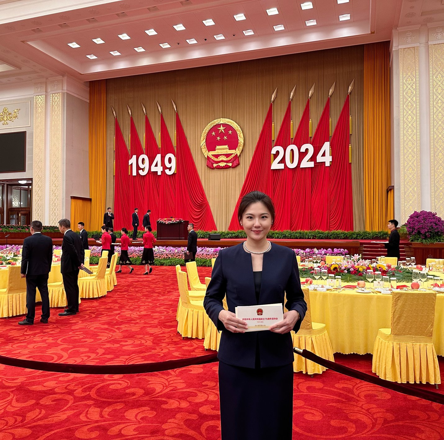 庆祝中华人民共和国成立75周年招待会于2024年9月30日晚在人民大会堂隆重举行。中共中央总书记、国家主席、中央军委主席习近平出席招待会并发表重要讲话。他强调,中华人民共和国成立75年来,我们党团结带领全国各族人民不懈奋斗,创造了经济快速发展和社会长期稳定两大奇迹,中国发生沧海桑田的巨大变化,中华民族伟大复兴进入了不可逆转的历史进程。新时代新征程,中国人民必将创造出新的更大辉煌,必将为人类和平和发展的崇高事业作出新的更大贡献。 约3000名中外人士出席本次招待会,欢聚一堂,共庆新中国75周年华诞。我院台湾籍教师吴沂澐受邀出席,她表示,很荣幸参加庆祝中华人民共和国成立75周年招待会,躬逢盛宴,激情满怀,祝福伟大的祖国繁荣昌盛!