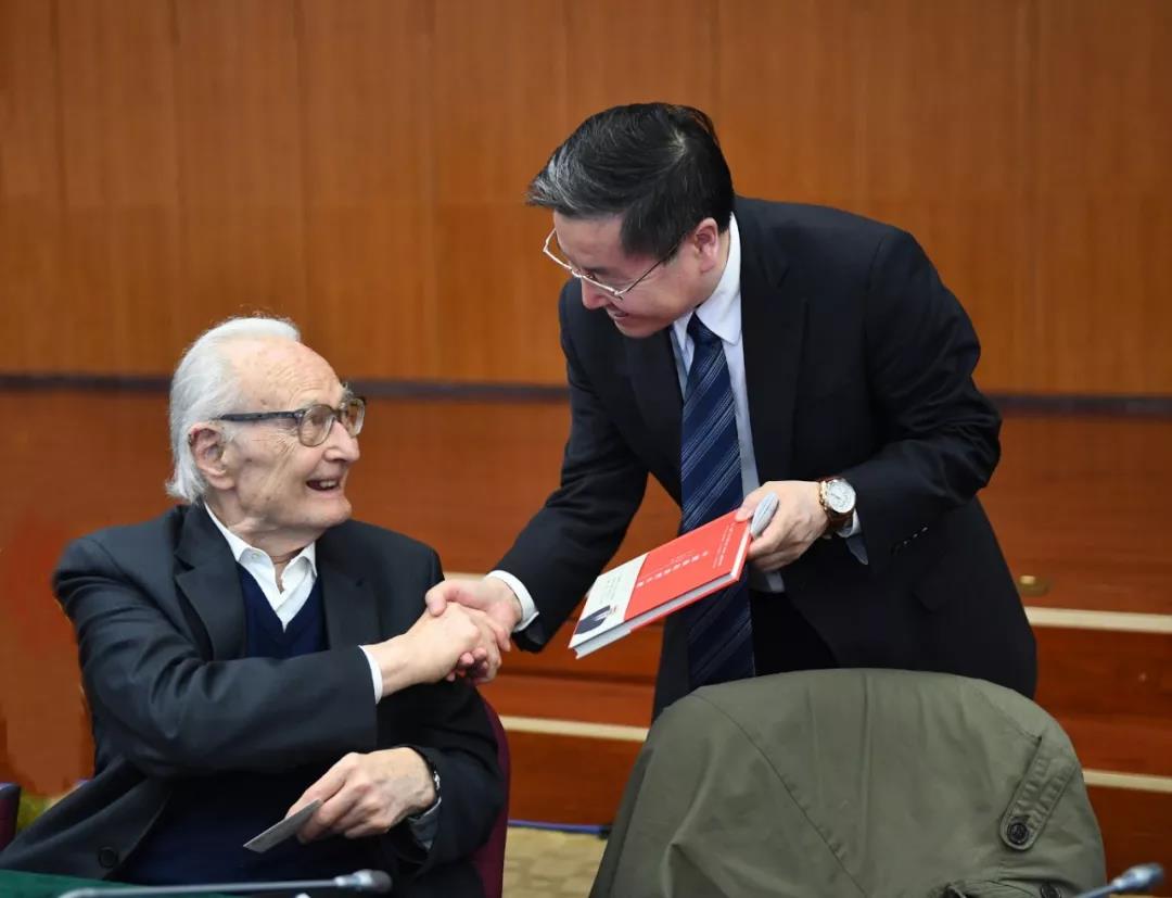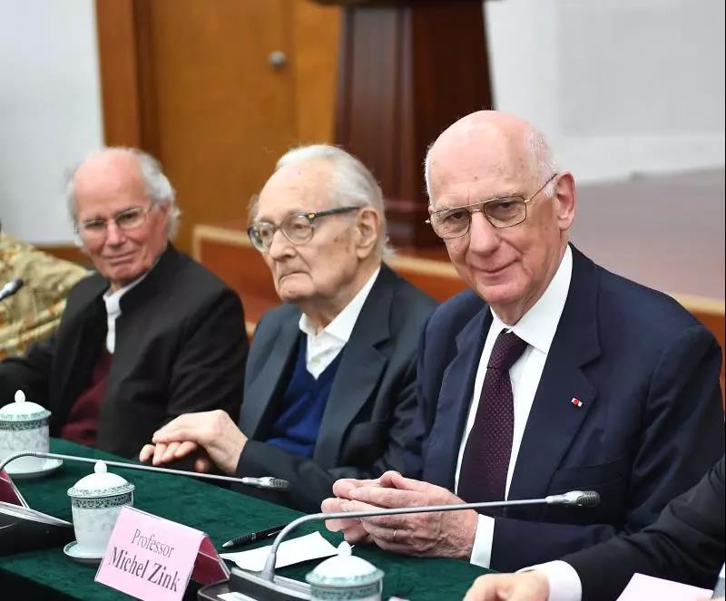北京师范大学副校长周作宇教授代表学校向 法兰西学院院士、法兰西学院副院长米歇尔·冉刻院士 颁发名誉教授证书 法兰西学院院士、法兰西学院副院长米歇尔·冉刻教授 荣获北京师范大学名誉教授职衔 法兰西学院三院士隆重出席 (左起:Filliozat、汪德迈、米歇尔·冉刻) 颁奖仪式现场 法国当代学术界巅峰人物、欧洲最著名中世纪文学研究学者、法国当代多次文学运动的领导者、热爱中国历史文明的法兰西学院院士米歇尔·冉刻(Michel Zink)教授,自2017年开始,加盟北京师范大学跨文化学研究生国际课程班的教学与人才培养工作,以独一无二的国际学术地位对中国文化研究给予重要支持。北京师范大学根据米歇尔·冉刻院士卓越的学术成就和对北京师范大学的重要贡献,授予其“名誉教授”职衔。 2019年4月24日,在北京师范大学英东楼学术会堂,正式举行颁授仪式。北师大国际合作与交流处处长程红光教授主持仪式。北京师范大学周作宇副校长出席仪式。法兰西学院三位院士和其他法国学者共8人出席了仪式,包括:法兰西学院通讯院士、法国高等社会科学研究院教授、法国远东学院原院长汪德迈教授,法兰西学院院士、法兰西学院金石美文学院原院长Pierre Filliozat教授和夫人Vasundhara Kavali-Filliozat教授,以及法国文学特级教授、法国阿尔多瓦大学东方学系主任金丝燕。北京师范大学跨文化研究院院长董晓萍教授和北京师范大学跨文化研究院副院长李正荣教授到会。北京师范大学跨文化研究院全体师生、北京大学、南京大学、敦煌研究院等单位的研究生和研究人员参加了会议。北京师范大学电视台记者到会。 上午10:30,北京师范大学国际合作与交流处处长程红光教授宣布仪式开始。首次,由北京师范大学副校长周作宇教授代表大学致辞。 北京师范大学周作宇副校长讲话 北京师范大学国际合作与交流处程红光处长主持仪式 周副校长指出,今年适逢中法建交55周年,中法两国领导人在最近举行的巴黎会谈中突出了加强中法高端人文科学合作的双边举措。我们高兴地欢迎法兰西学院三院士聚首北师大,见证向米歇尔·冉刻教授颁发北京师范大学名誉教授证书的历史时刻。 米歇尔·冉刻教授是欧洲公认的一流文学家、是当代法国学术文化顶峰的代表人物。他毕业于巴黎高师,多年来以精湛的学问和高品质的成果,赢得了崇高的学术声望。他对欧洲中世纪文学研究,对引领法国文学思潮,对发起高雅品味与大众兴趣结合的新出版运动,都做出了重大贡献。他在法国文学界、思想界、教育界和出版界硕果累累。被称为“院士中的院士”。他在出任法兰西学院金石美文学院终身秘书长期间,积极支持法国学术界乃至世界范围内对中华历史文明的研究。他还曾于两年前参与北京师范大学跨文化学研究生国际课程班的授课,受到本校和来自全国多所高校的研究生的极大好评。最近,由他加盟的中法合作“远近丛书”《谦卑》一书出版,这是他首次在中国出书。我们相信他在中国的影响会越来越大。希望米歇尔·冉刻教授能常访北师大,为中法学术交流和跨文化人才培养多做贡献。 校领导讲话结束后,在程红光处长的主持下,周作宇副校长向米歇尔·冉刻教授颁发北京师范大学名誉教授证书。 周作宇副校长与米歇尔·冉刻院士共同打开名誉教授证书 在中法学者热烈的掌声中,双方合影留念,共庆这一历史时刻。 法兰西学院米歇尔·冉刻院士致答谢词 汪德迈教授向北京师范大学校领导和国际处领导赠送新著《中国教给我们什么》。 汪德迈先生向校领导赠送新著《中国教给我们什么》 颁奖仪式之后,米歇尔·冉刻教授与汪德迈教授联袂发表《人文科学方法论》的学术讲演,以郑重致谢。 (本期摄影:齐松/图文编辑:王文超)