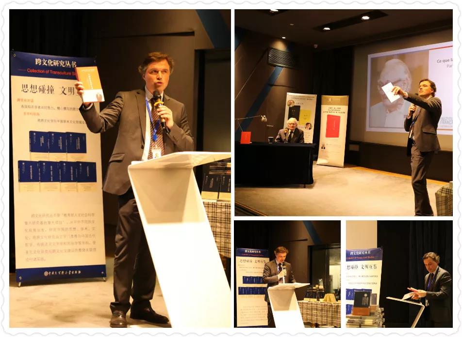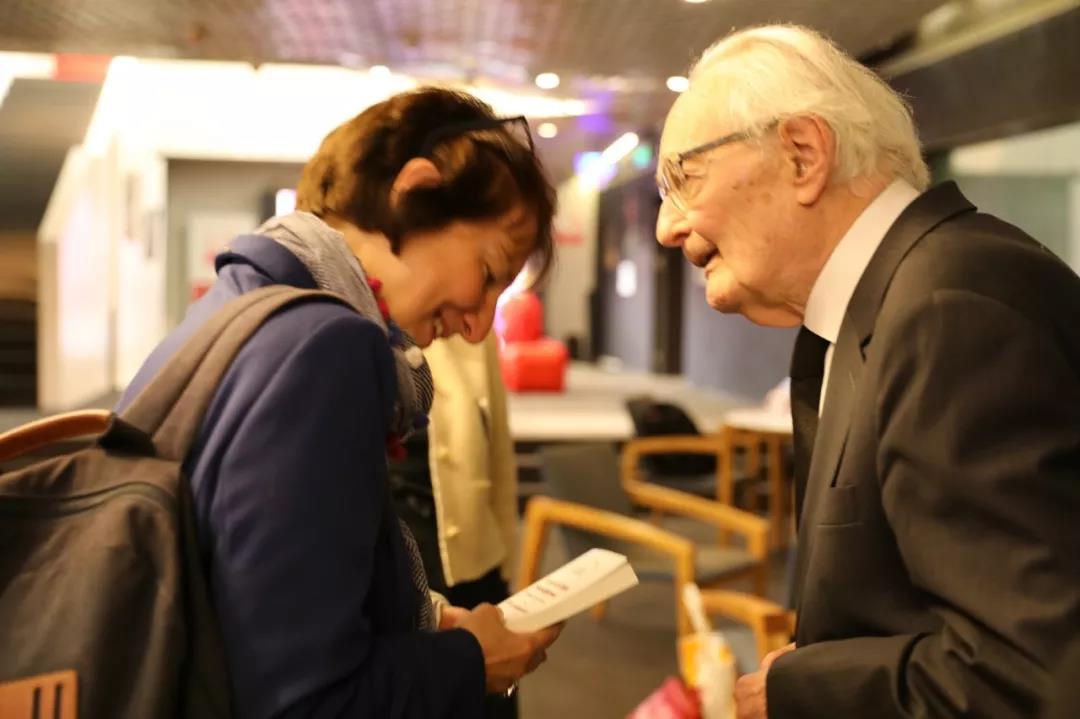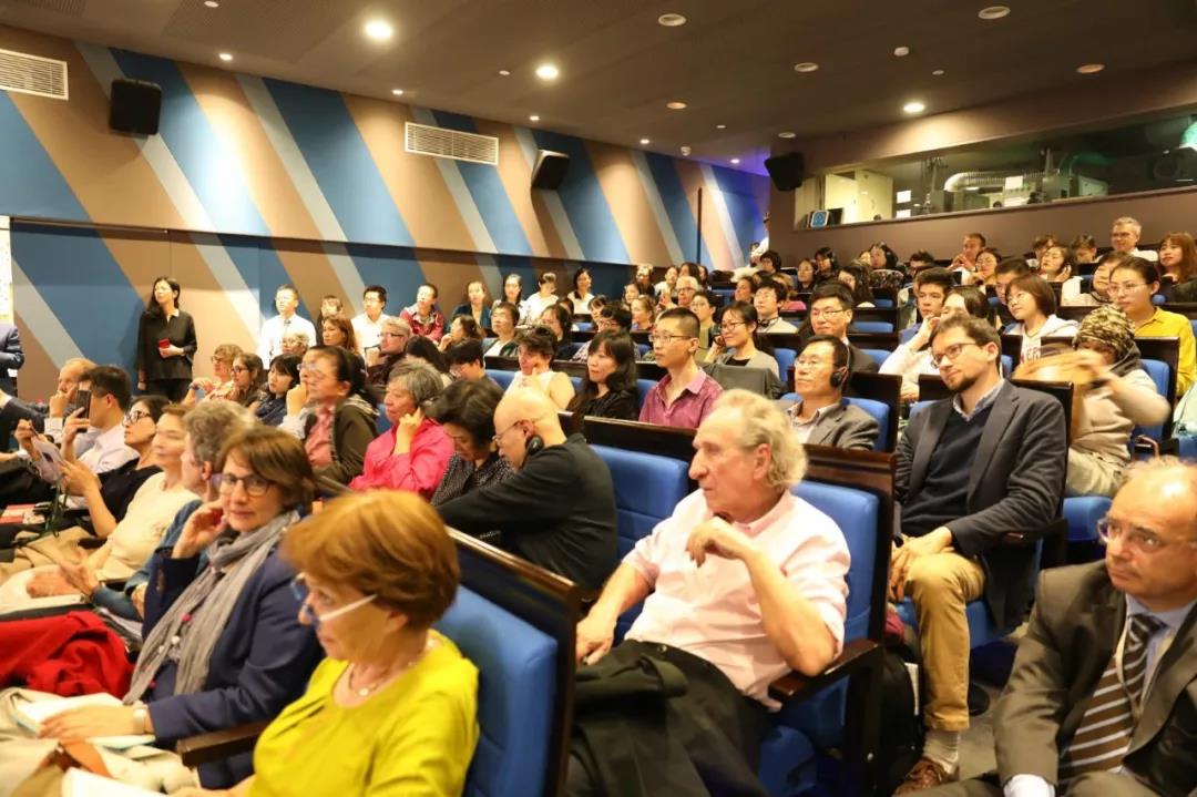法国驻华大使馆文化处主办汪德迈“中国教给我们什么”专场学术讲座,2019年4月23日下午18:30至20:00,在法国文化中心隆重举办。 讲座前播放北京师范大学跨文化研究院慕课(清华大学学堂在线后期制作) 法国驻华使馆文化处会议厅座无虚席 北京师范大学跨文化研究院、香港明远基金会、中国大百科全书出版社代表出席 (右起:王宁、李国英、程正民、董晓萍、陈越光、刘国辉、李正荣) 法国驻华大使馆大使代表、经济参赞、科技参赞,文化处高等教育与社科合作专员、高级项目官员,法国文化中心图书馆馆长,法国驻京研究机构学者和法国在华国际企业主管到会。法兰西学院副院长、法兰西学院院士Michel Zink教授出席会议。 北京师范大学跨文化研究院学者应邀与会,包括名誉院长王宁教授、学术委员会主任程正民教授、院长董晓萍教授、副院长李国英教授和李正荣教授等。其他高校和科研院所到会学者的单位有:北师大文学院、教育学部和外文学院,北京大学、清华大学、中国文化书院、中国科学院、中国社会科学院、南京大学、山东大学和敦煌研究院等。在京重点高校研究生代表到会。中外学者参加会议者逾百人。 商务印书馆出版中法合作、乐黛云主编《跨文化对话》与中国大百科全书出版社出版汪德迈《跨文化中国学》等23种 《人民日报》、中国新闻社和北师大电视台等主流新闻媒体记者到会。会议厅座无虚席,座位间的过道和走廊都坐满了人。很多学者无法进入室内听讲,就坐会议厅外听广播,从始到终不曾离开,现场人气爆棚、盛况空前。 法国驻华大使馆文化处高等教育与社科合作专员杜雷(Jean-Francois Doulet)主持讲座并致辞。 他代表法国驻华大使欢迎各位的到来,对讲座网络报名大幅突破限额表示感叹,对汪德迈先生在中法知识界的崇高声望表示敬意。他说,汪先生是今晚的明星。他的人生与学术经历,曾将他带往中国、越南、印度和日本等亚洲国家,他研究中国社会制度和中国思想史,在巴黎高等社会科学研究院重点研究儒学,著作等身。他是法国当今最重要的汉学家。他的近作《中国教给我们什么》,书名就非常吸引人,书中有了解中国的钥匙,这对我们来说是很重要的,我们希望得到这把钥匙。今晚的会议厅很热,有天气的热,也有精神上的、心理上的热度。“尊敬的汪德迈先生,我们期待聆听您的话语与思想”。 汪德迈先生为讲座做了充分准备,本次到京后,已在北师大面向本科生和研究生进行了预讲,现在面向法国听众,使用法语讲演,增加了中西对比、中法对照的针对性。他对自己的法国同胞亲切地说: 汪德迈先生在演讲(背后是汪德迈新著《中国教给我们什么?》海报和米歇尔.冉刻/陈越光新著《谦卑》海报) “为什么我会写《中国教给我们什么?》,这是我与不同学科的中外同行交流得来的想法。我的看法是,中国文化有特殊性,又是最具有普世价值的真实存在,今天我们要对此加强了解。现在西方世界正在认识中国,但没有认识到中国文化特殊性的普遍意义”。 “在中国文化传统中,文字优于体力劳作,精神优于物质。世人皆知古罗马法典在世界上影响深远,但别忘了中国也对世界有广泛的影响。中国举世无双的影响力之一,是成功地通过科举制选取人才的方式,使全世界普遍建立了以此为基础的学校教育和选举制度。而在西方,从中国科举制学来所选取出来的官僚,却不是劳心者,而是纯粹的官僚,所以西方社会学产生了对官僚体制的研究”。 汪德迈先生的讲演纵横古今、贯穿儒释道,钟情于中国经典思维中的纵浪大化、天人合一的宇宙观境界。讲演的结束部分回味悠长而不无幽默,他最后说:“我把《庄周梦蝶》交给你们,让你们自己去思考”,话音未落已被全场爆发的掌声所淹没。提问环节发言踊跃,思想的音符起落交错,宛如交响乐,汪先生的回答应对裕如,现场气氛从始到终庄重而热烈。 现场听众踊跃提问 汪德迈先生曾任法国远东学院院长多年,讲演结束后,还与法国远东学院北京中心现任主任杜杰庸博士(Guillaume Dutourmier)做了短暂交谈。 汪德迈先生向法国学者赠送法文版《中国教给我们什么?》 (本期摄影:罗珊/图文编辑:王文超)