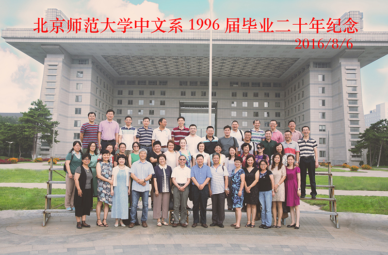 2016年8月6日,中文系本科96届毕业生毕业20周年聚会在励耘报告厅举行,海内外近50余名校友从各地赶来。 文学院院长过常宝教授,曾经给92级开过课的郭英德老师、李正荣老师、班主任易敏老师、陈珊老师、北校工作部的李直老师亲临座谈会。 过常宝院长向同学们介绍了北师大及文学院今日在国际化办学、学术研究、服务社会等方面所取得的卓越成就。老师们忆述当年情景,勉励同学们在人生最辉煌的中年时期继续有作为。尚学峰、钱振纲两位老师因在外地不能前来,还特意录制了视频勉励同学。座谈会上同学们纷纷发言,向老师们汇报毕业后的发展,表达了对母校、对老师的深深感恩和祝福并向老师和文学院赠送了礼品。下午,同学们还重返北校,找寻大一时在北校学习生活的印迹,重温大学第一课。聚会结束时,大家都依依不舍,约定来年再相会。