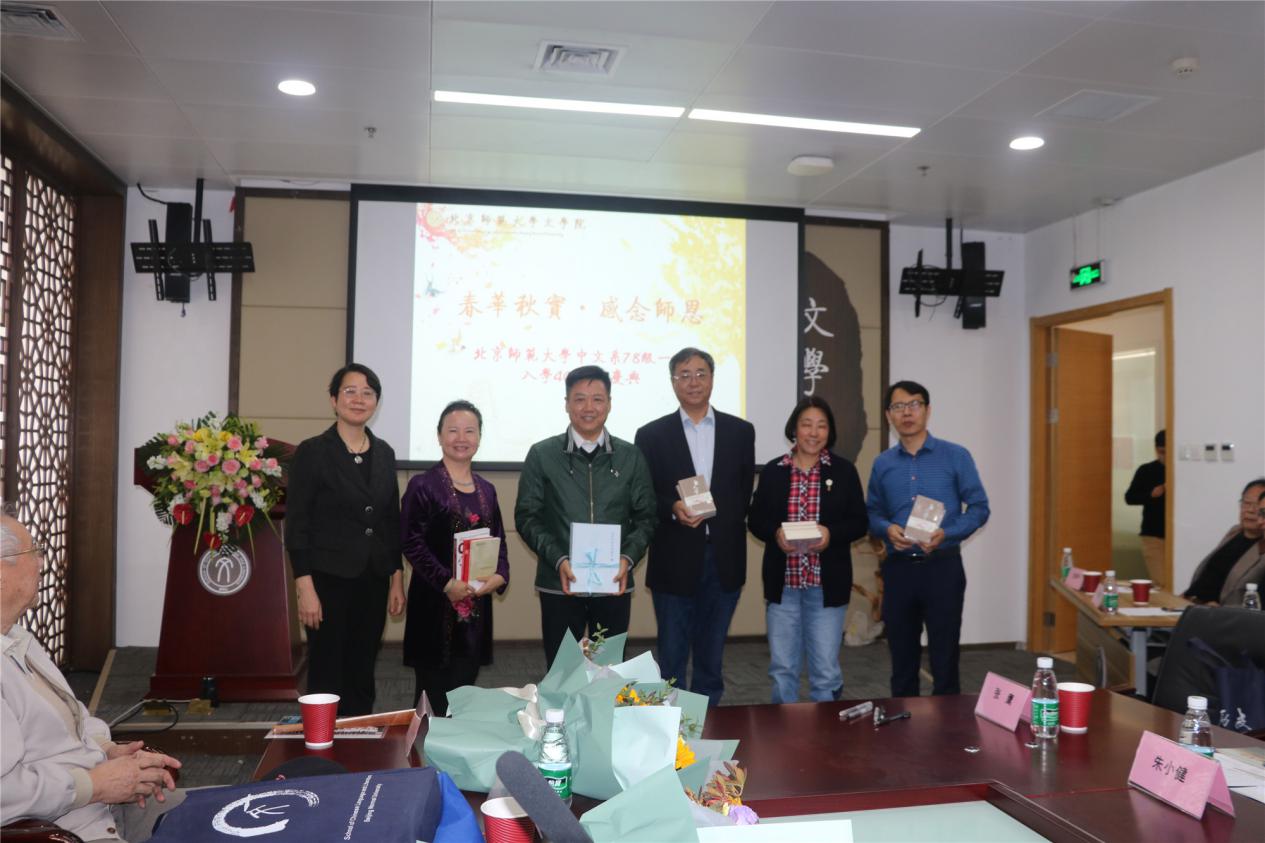 2018年10月26日,文学院1978级1班校友返校活动在北京师范大学主楼C区5049举办,师长代表仲哲明、史锡尧、李修生、韩兆琦、张俊、陈惇、陈子艾应邀出席,北师大校友会副会长陈光巨、秘书长范文霞、文学院副院长杨利慧、文学院分党委副书记周云磊参加活动。78级1班校友、云顶集团welcome官网教授郭英德、校友张鹰担任主持。 北京师范大学校友会副会长陈光巨首先发言,代表学校向78级1班返校的师长代表及校友表达热烈的欢迎,并向78级1班校友传达了《中共北京师范大学党委会关于印发<关于进一步加强校友工作的若干意见>的通知》(师党发〔2018〕16号)的文件精神。陈副会长强调,校友工作是学校整体工作不可或缺的重要组成部分,明确表示要打造“同心同力同向同行,共建共管共享共赢”的校友文化。 文学院副院长杨利慧发言。杨副院长细致地问询了各位78级校友的近况,并介绍了文学院近年来的发展状况,特别是就文学院学科建设、科研工作、国际交流等方面进行了重点介绍。文学院分党委副书记周云磊详细介绍了文学院当前的建设情况及学院取得的诸多成就。随后,校友代表向恩师敬献了鲜花、向母校赠送了礼物,文学院也向校友回赠了礼物。 师长代表与与会校友先后发言。老师们回忆了当年高考及招录情况,以及学院在条件有限的条件下开展的针对性教学培养工作。校友们时隔四十余年,再一次如刚入学时一般进行了自我介绍,同时也向师长、同窗介绍了自己走出师大后四十年的所取得的成绩。 纪念活动还特别设置了师长代表为身穿学位服的78级1班校友拨穗及合影的环节,以弥补当年未能举行拨穗仪式的遗憾,表达学子对母校和恩师滋兰树蕙,桃李满园的祝愿。 座谈会结束后,师长代表及校友们来到教二201教室,重回曾经读书的地方、重温当年淳质的情谊。师长代表和校友当日下午及次日还参观了北京师范大学新图书馆、校史馆、辅仁校区,同学之情久驻心田。 参观图书馆 参观校史馆